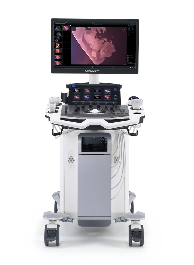 High-End-Ultraschallgerät mit Künstlicher Intelligenz, basierend auf der MUSE-Plattform. Sechs Sondenports, 24" LED Monitor, Scherwellen-Elastographie, Multi-Doppler und umfangreiche KI-Programme.